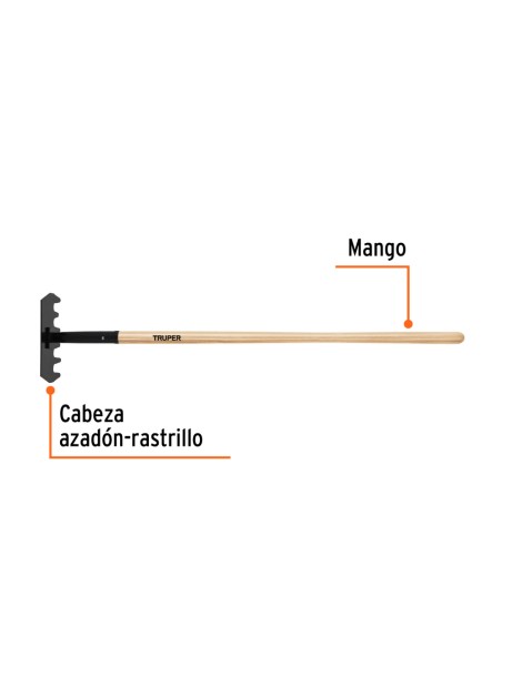 Venta online de rastrillo McLeod de 122 cms de largo. Cabeza fabricada en acero SAE 1035 con filo templado y acabado en pintar en polvo color negro. Mango en madera de fresno americano. Compre en nuestra tienda online al mejor precio de la web.