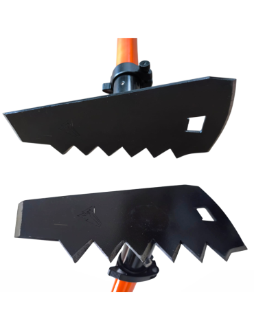 - Côté de largeur aiguisé à utiliser comme houe et déplacer des terrains compactés.