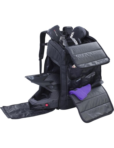 Zaino da viaggio Zaino EVOC Zaino 60 fabbricato in tessuti resistenti e imbottiti. Borsa da viaggio con protezioni per trasportare accessori, protezioni e strumenti per la bici.
