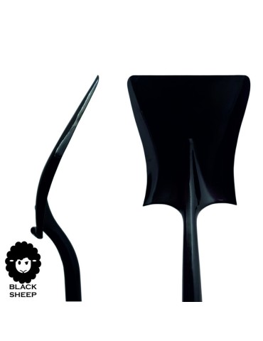 Questa è la pala di pecora nera. Pala di acciaio al carbonio profilato e laccato in nero, con specifica manico in legno curvato per la costruzione di perts, salti e accordi su sentieri MTB, centri per sentieri, sentieri sporchi e parchi ciclici. Pale luminosa, ergonomica e leggera progettata per i morsbuilder.
